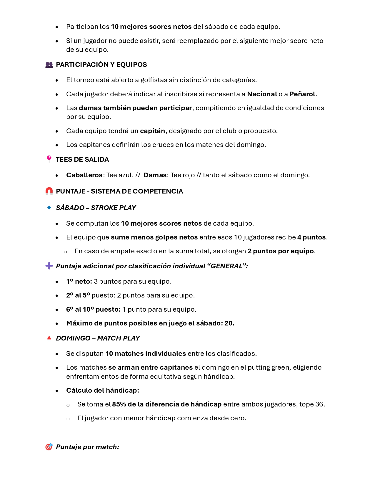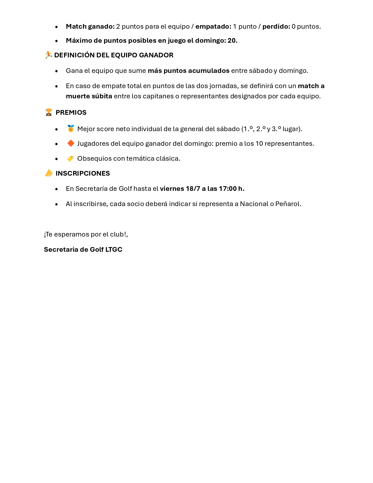 🔶 DOMINGO 21/7 – MATCH PLAY POR EQUIPOS